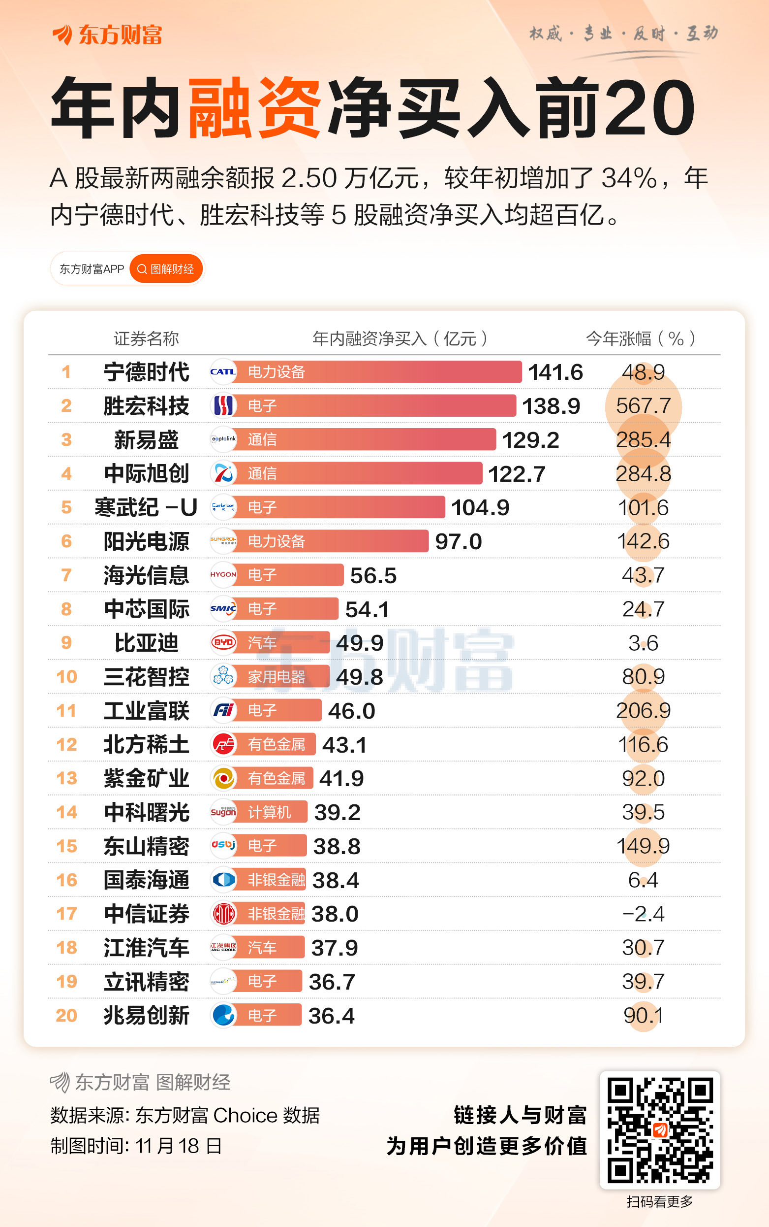 市场震荡两融重回2.5万亿 一图速览年内融资净买入TOP20