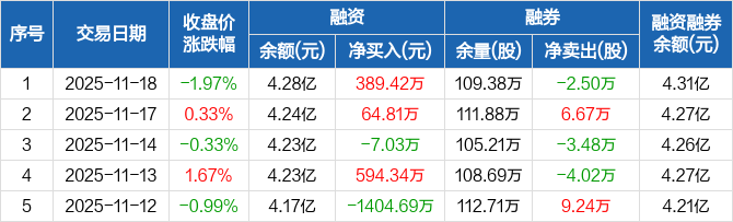 建元信托融资融券信息显示,2025年11月18日融资净买入389.42万元;融资余额4.28亿元,较前一日增加0.92%
