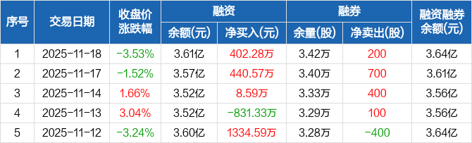 禾迈股份融资融券信息显示,2025年11月18日融资净买入402.28万元;融资余额3.61亿元,较前一日增加1.13%