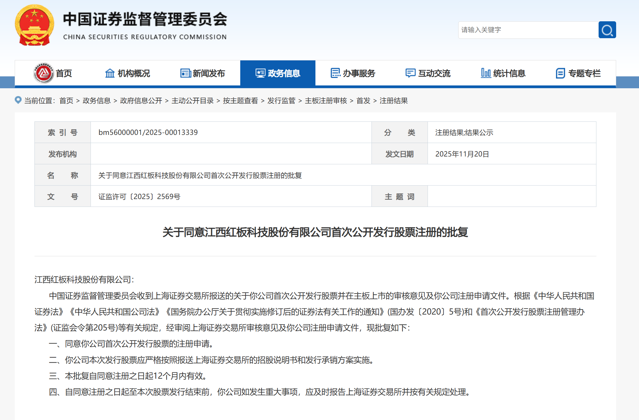 上证报中国证券网讯(记者王凯丰)11月20日,中国证监会发布《关于同意江西红板科技股份有限公司首次公开发行股票注册的批复》。据悉,江西红板科技股份有限公司(下称“红板科技”)拟在上交所主板上市。