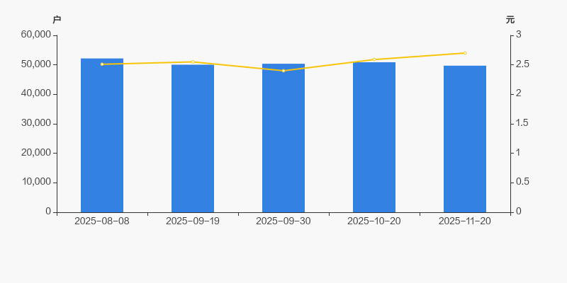 2025年8月8日至今,公司股东户数有所下降,区间跌幅为4.72%。2025年8月8日至2025年11月20日区间股价上涨7.57%。