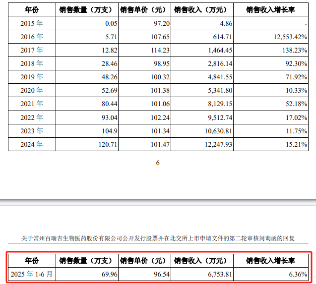 百瑞吉披露,公司产品宫腔用交联透明质酸钠凝胶自2015年上市以来,境内销售收入逐年增长。由于该产品规格型号较多,其主流规格为3ml和2.5ml产品。