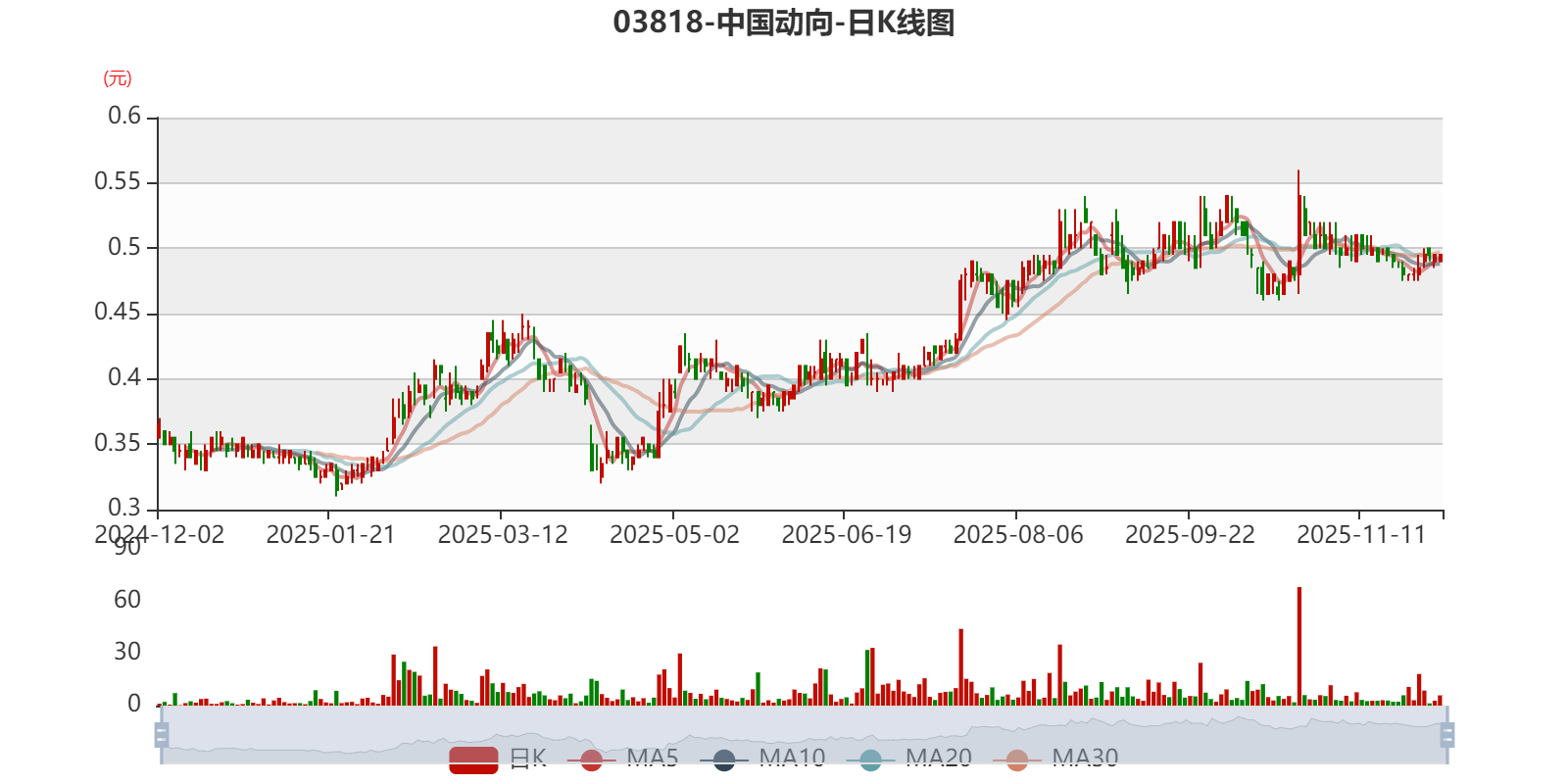 中证智能财讯中国动向(03818)12月2日披露2025-2026年中期报告。截至9月30日的6个月内,公司实现营业收入7.48亿元,同比下降0.11%;归母净利润2.04亿元,同比增长48.78%;经营活动产生的现金流量净额为2326.5万元,上年同期为-611.4万元;据报告显示,中国动向基本每股收益为0.0347元,平均净资产收益率为2.21%。公司2025-2026年中期分配预案为:每股派息0.0208元,相当于0.0228港元。