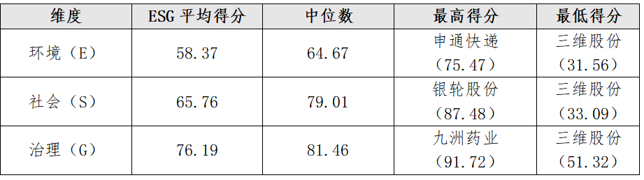 从行业表现看,台州地区上市公司以制造业为主,其中医药制造业以76.54的平均得分领跑;而橡胶和塑料制品业仅得57.77分。各行业均未形成具有强引领力的示范集群,这种现象表明,台州市相关上市公司在ESG实践上尚未构建起行业内及台州地区内的有效互动与协同提升机制。