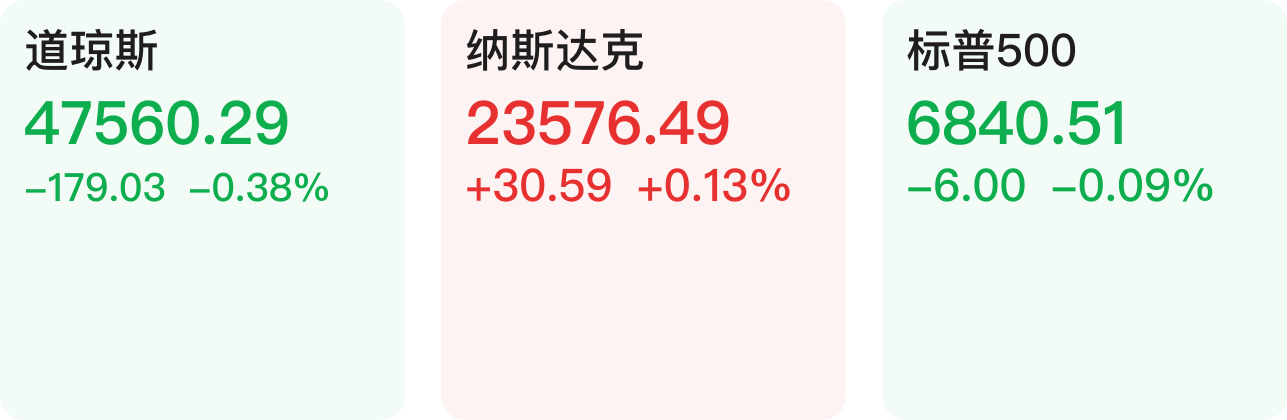 美股三大指数收盘涨跌不一,道指跌0.38%,纳指涨0.13%,标普500指数跌0.09%。谷歌、博通、特斯拉涨超1%,Meta跌超1%,英伟达跌0.31%。贵金属板块涨幅居前,泛美白银涨超11%。生物技术、减肥药板块走低,礼来、辉瑞跌超1%。纳斯达克中国金龙指数收跌1.37%,热门中概股多数下跌,百度跌超4%,小鹏汽车、理想汽车跌超3%,哔哩哔哩跌超2%,蔚来、阿里巴巴跌超1%。