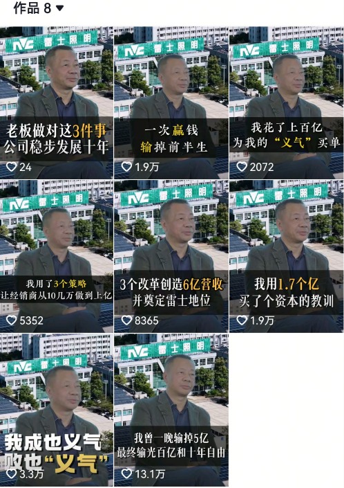 近期,记者注意到,自称“雷士照明创始人吴长江”的账号在12月4日至12月10日陆续发布8条视频,迅速吸粉14.8万人。