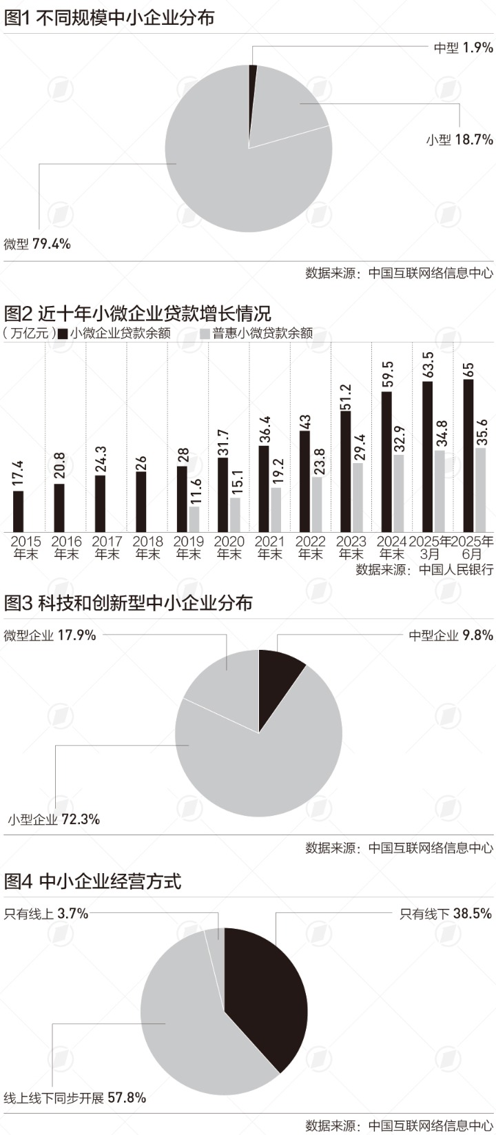 中国互联网络信息中心近日发布的《从互联网大数据看中小企业发展(2025)》(下称《报告》)称,中小企业广泛分布于各个产业细分领域,贡献了我国60%以上的GDP、70%以上的技术创新、80%以上的城镇劳动就业。