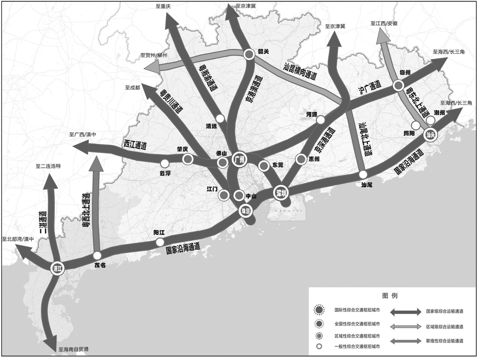 广东省综合立体交通网主骨架及枢纽城市布局示意图图片来源:《广东省综合立体交通网规划纲要》