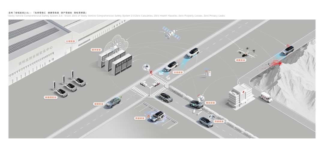在技术体系创新方面,吉利基于“全域AI”进阶打造“全域安全2.0”技术体系,秉持“以人为尊”理念,将视角从“整车安全”升级为“人-车-路-云-星”生态视角,以“生命零伤亡、健康零危害、财产零损失、隐私零泄露”为四大安全愿景。该体系在原有四大安全域基础上,迭代升级为九大安全系统,新增“公域安全”板块,聚焦公共安全意识提升、标准共建等领域,实现从“单车安全”到“全交通生态安全”的跨越;将“电池安全”扩展为“新能源安全”,构建从硬件到软件、从部件到整车的全方位安全体系;从“信息安全”升级为“数字安全”,涵盖AI安全与网络安全,守护智能出行安全。