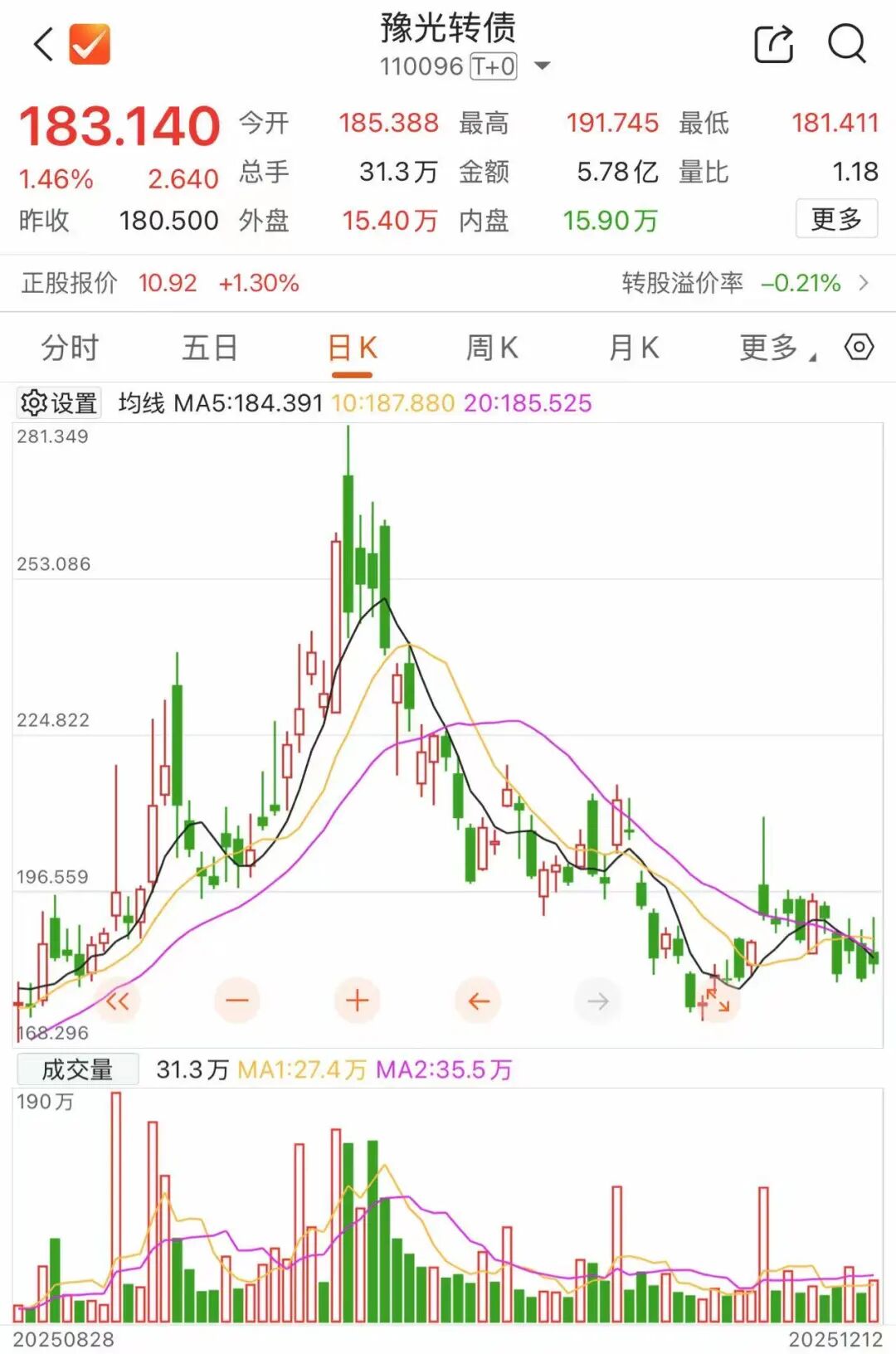 截至12月12日收盘,豫光转债收盘价为183.140元/张。对照强赎价格,投资者若是未及时操作,或将亏损超45%。截至目前,豫光转债仍有1.16亿元余额尚未完成交易或转股,所占比例超过16%。