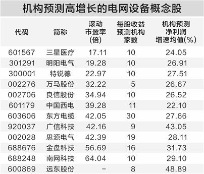 机构预测高增长的电网设备概念股一览