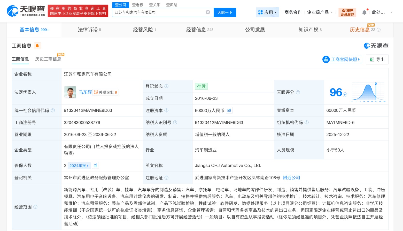 天眼查App显示,近日,江苏车和家汽车有限公司发生工商变更,注册资本由9亿人民币减至6亿人民币,降幅约33%。该公司成立于2016年6月,法定代表人为马东辉,经营范围含新能源汽车、专用车、挂车、汽车车身的制造及销售,汽车、摩托车、电动车、场地车的零部件研发、制造、销售并提供售后服务等。股东信息显示,该公司由理想汽车旗下江苏心电互动汽车销售服务有限公司全资持股。