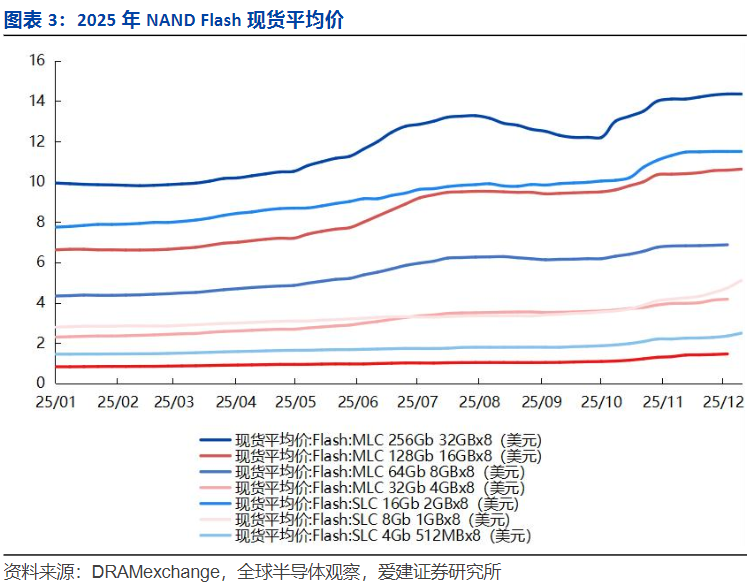 爱建证券表示,伴随DRAM与NANDFlash现货平均价全面持续上扬,全球存储芯片市场已正式开启新一轮成长周期。
