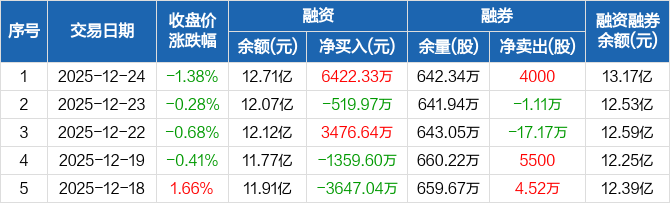 分众传媒融资融券信息显示,2025年12月24日融资净买入6422.33万元;融资余额12.71亿元,较前一日增加5.32%。