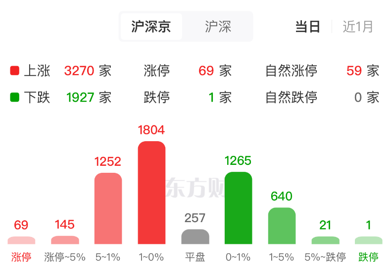 量能方面,两市半天成交1.20万亿元,较昨日同期放量约509亿元;3270股早盘飘红,69股涨停,封板率为73.40%。