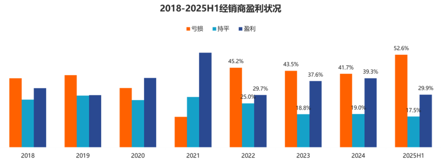 2018-2025H1经销商盈利情况 图源:中国汽车流通协会