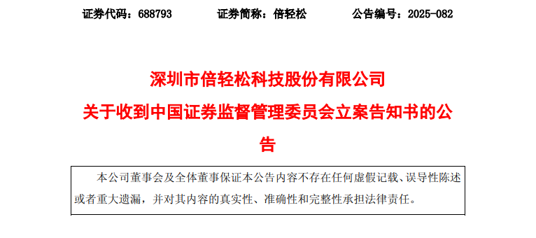 倍轻松表示,目前公司各项经营活动和业务均正常开展。立案调查期间,公司将积极配合证监会的相关工作,并严格按照相关法律法规和监管要求及时履行信息披露义务。