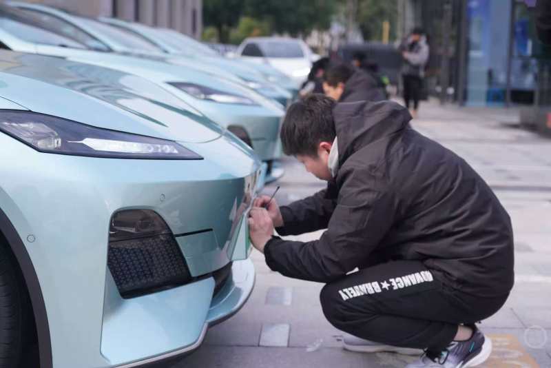 12月26日,两江新区深蓝汽车公司内,46辆深蓝SL03排成整齐的队列。车牌末尾的“Z”字母,彰显着其与众不同的身份。