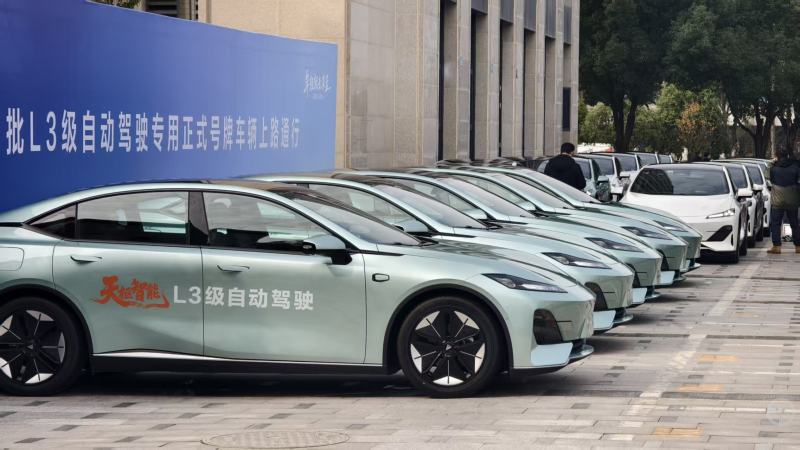 当工作人员将最后一块车牌拧紧时,现场掌声响起——这是国内首批批量上牌的L3级自动驾驶汽车。从12月15日工信部批准相关车型准入,到12月20日首辆L3级自动驾驶汽车上牌,再到此次46辆车集体上牌,短短11天,中国智能网联汽车就已经跑进了“Next Level”。