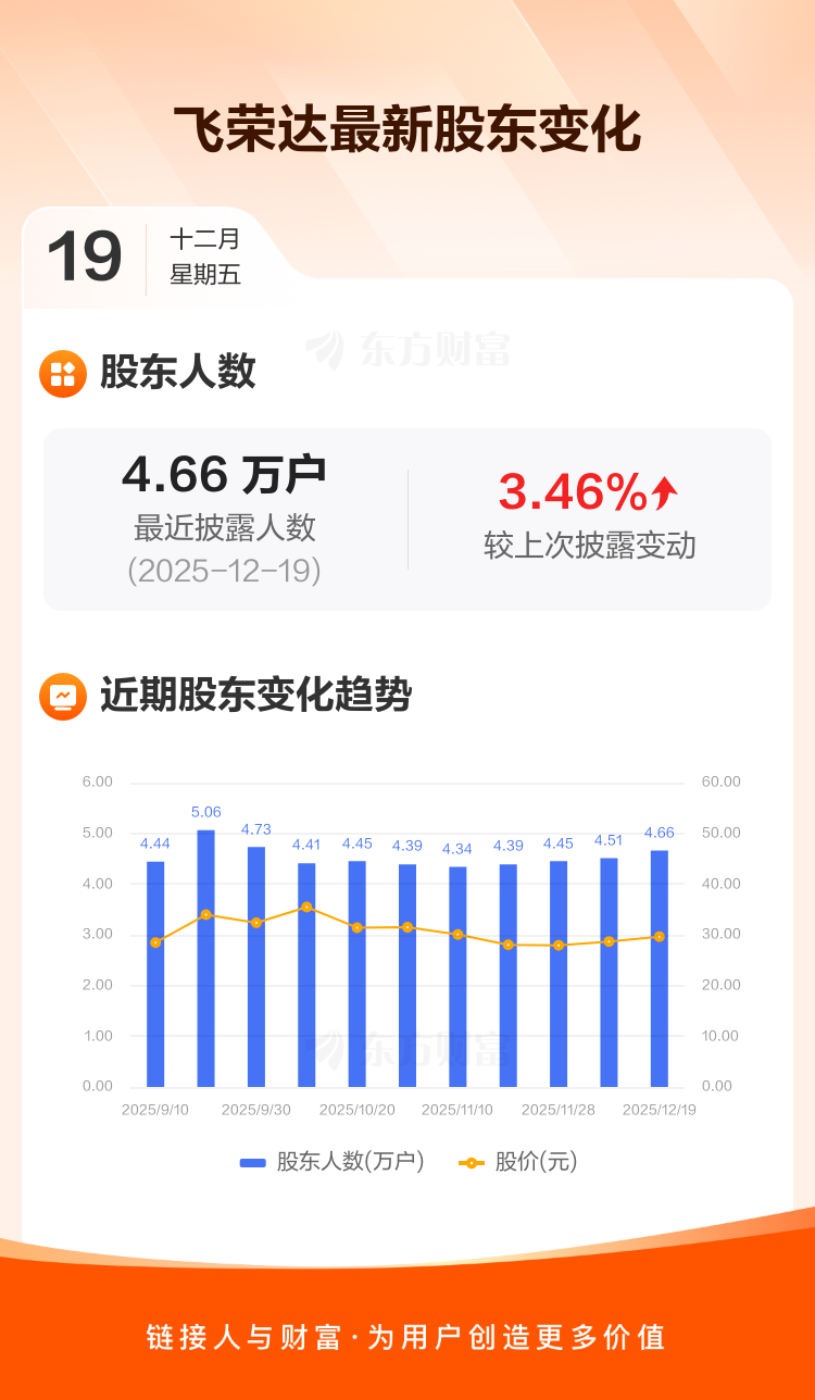 飞荣达:截至12月19日最新股东户数4.66万户,较上期增加3.46%