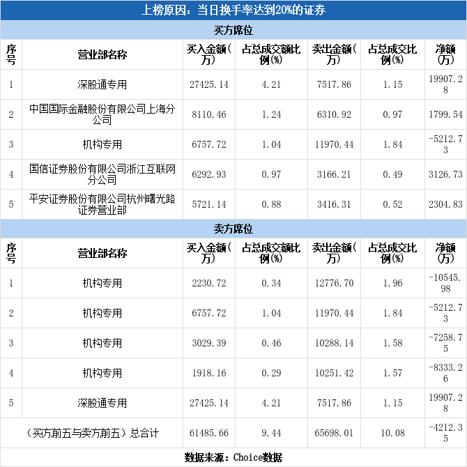多主力现身龙虎榜,通宇通讯换手率达44.72%(12-29)