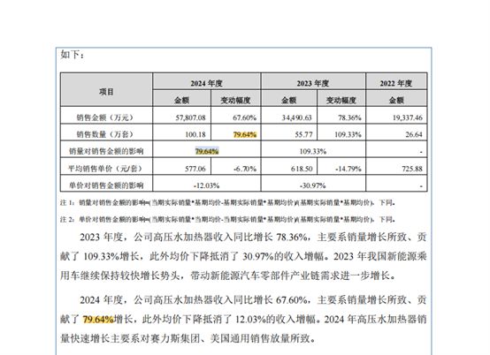 基于上述情况,监管部门要求公司说明2024年对赛力斯集团、美国通用销售金额大幅增长的合理性,以及报告期内高压水加热器产品收入快速增长的真实性和可持续性。