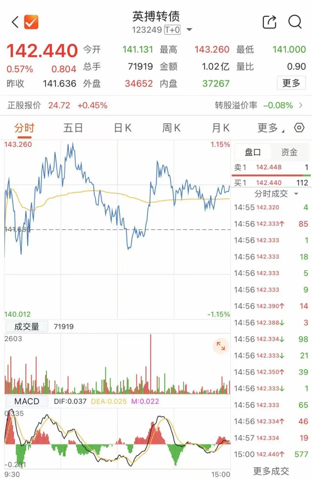 截至2025年12月29日收盘,英搏转债价格为142.44元/张。对照100.10元/张的强赎价格,投资者若是未及时操作,或将亏损超29%,截至目前,英搏转债仍有1.10亿元余额尚未完成交易或转股,所占比例超过13%。