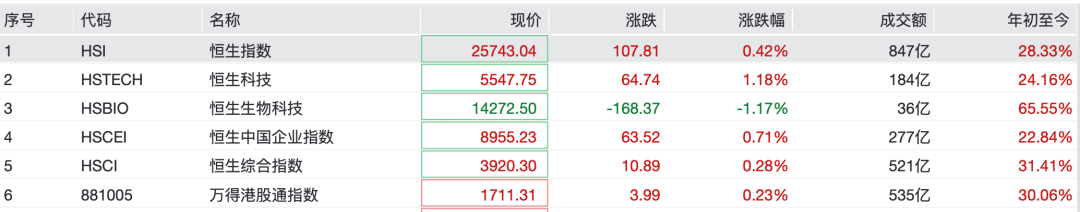 港股方面,恒生指数、恒生科技指数、恒生中国企业指数等上涨,恒生生物科技等指数微跌。个股方面,百度集团大涨超7%,蔚来、中芯国际涨超3%,腾讯控股、阿里巴巴、小米集团、比亚迪股份微涨。