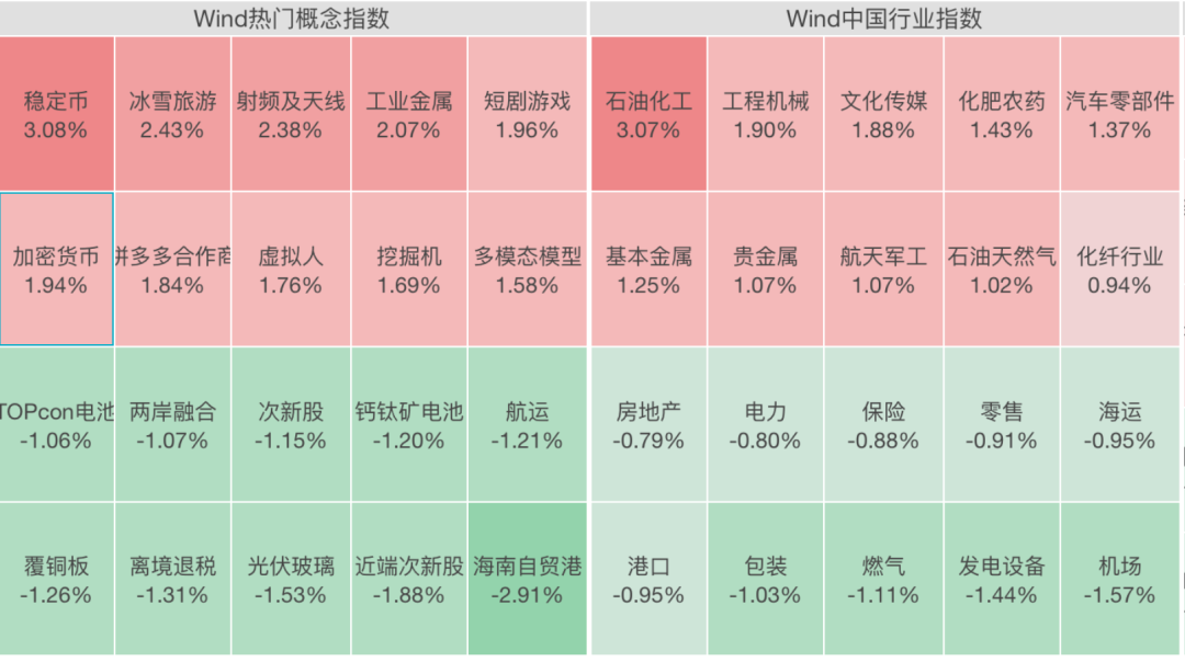 从板块看,2025年贺岁档电影票房创近八年新高,影视概念异动拉升。人形机器人、半导体、商业航天概念股持续活跃,石油化工板块领涨;保险、风电设备等领跌,海南自贸港概念股下挫。