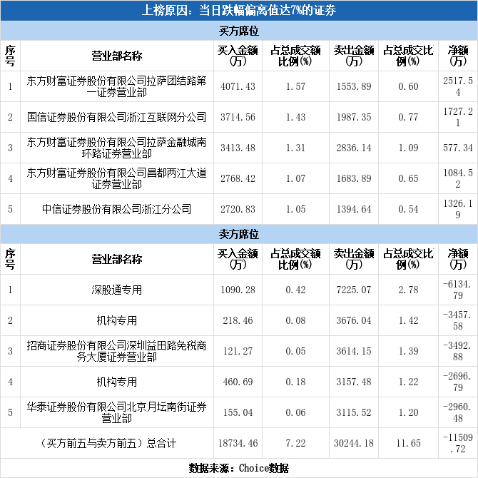 多主力现身龙虎榜,浙江世宝跌停(12-30)