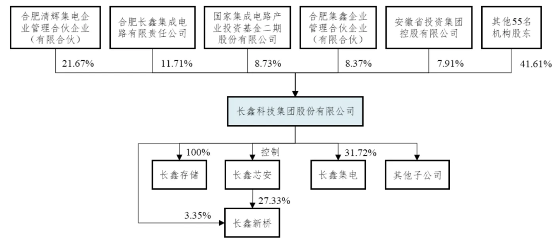 此外,长鑫科技目前无控股股东,其第一大股东为合肥清辉集电企业管理合伙企业(有限合伙),直接持有公司21.67%股份。