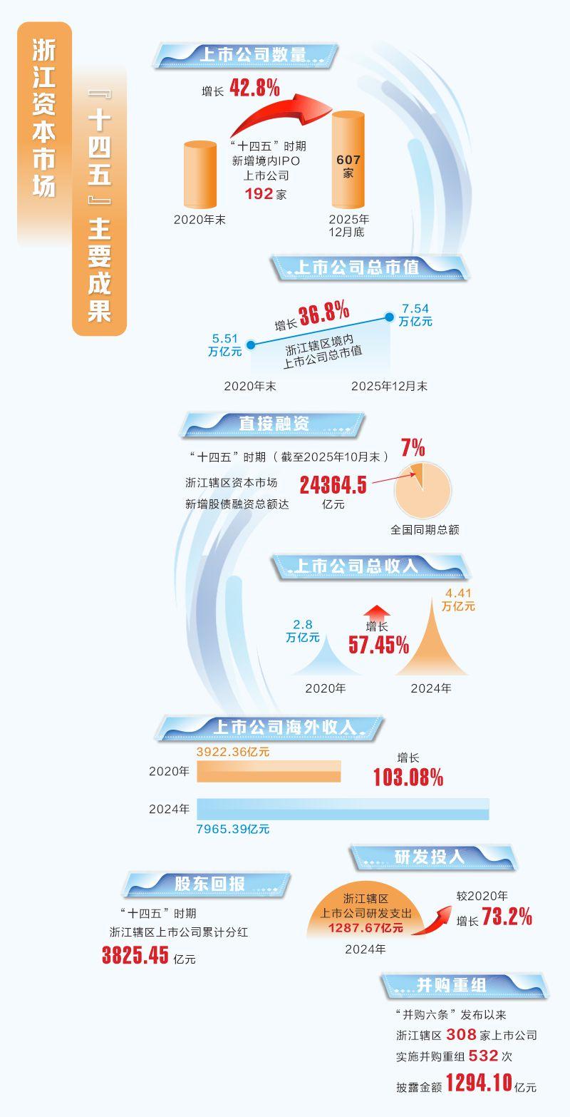 浙江省委日前发布的“十五五”规划建议明确,要加快建设创新浙江、发展新质生产力,完善适配科创与产业变革的金融服务体系。面向“十五五”,浙江将充分发挥资本市场枢纽作用,落实深化改革举措,聚焦新质生产力领域培育优质上市企业,活跃并购重组市场,强化分红回购与常态化退市,严打违法违规行为、加强投资者保护,以资本市场高质量发展服务浙江特色现代化产业体系建设。