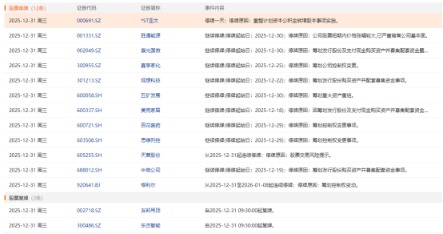 上证报中国证券网讯 12月31日,3家公司临停:*ST亚太、天普股份、格利尔,2家公司复牌:友邦吊顶、东杰智能。