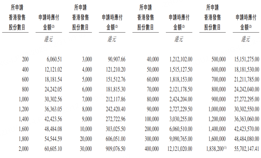乙组门槛为20万股,申购所需资金约606.05万港元。