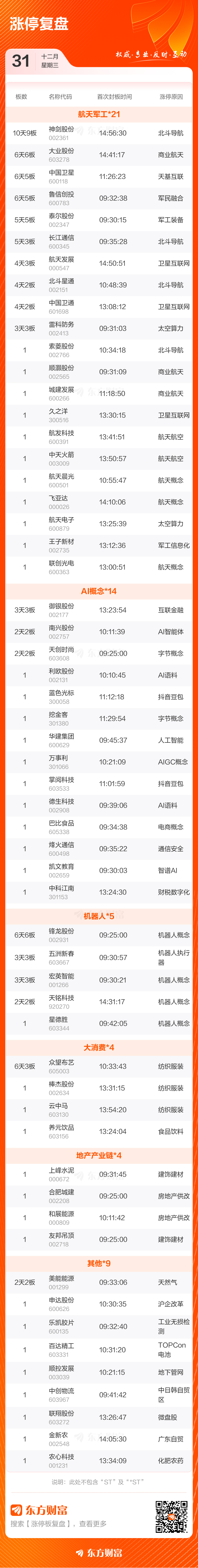 12月31日涨停复盘:63只股涨停 神剑股份10天9板