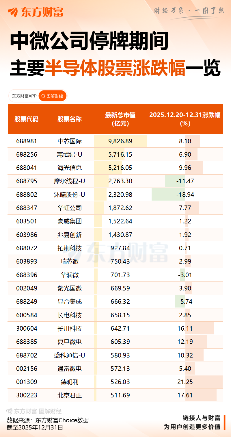 因筹划前述收购事项,中微公司股票于2025年12月19日起停牌,停牌前每股报271.72元,2025年全年股价涨幅超44%,最新市值为1708亿元。