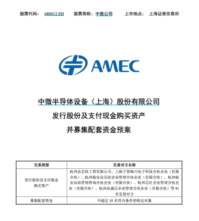 停牌10个工作日后,中微公司于2025年12月31日发布公告,披露了发行股份及支付现金购买资产并募集配套资金预案,公司股票将于1月5日开市起复牌。