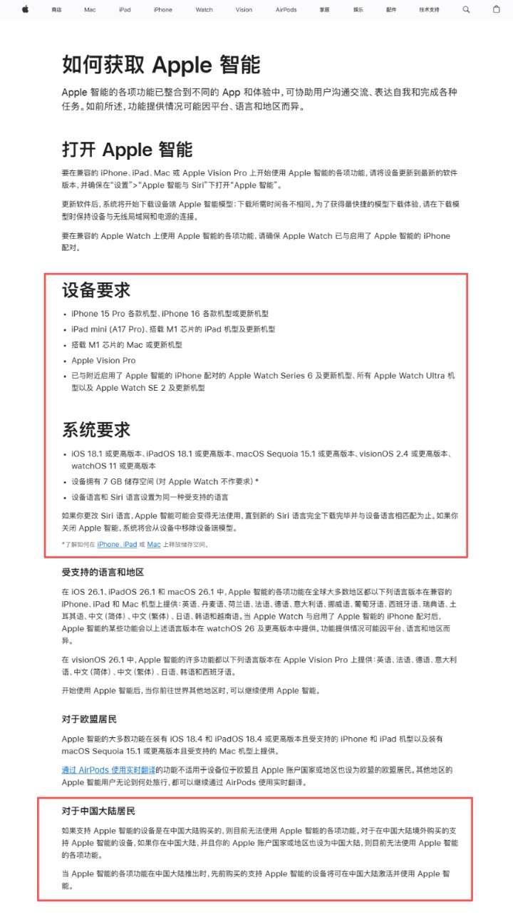 值得注意的是,苹果指出,如果支持Apple智能的设备是在中国大陆购买的,则目前无法使用Apple智能的各项功能。对于在中国大陆境外购买的支持 Apple智能的设备,如果使用者在中国大陆,并且Apple账户国家或地区也设为中国大陆,则目前无法使用Apple智能的各项功能。但当Apple智能的各项功能在中国大陆推出时,先前购买的支持Apple智能的设备将可在中国大陆激活并使用 Apple智能。
