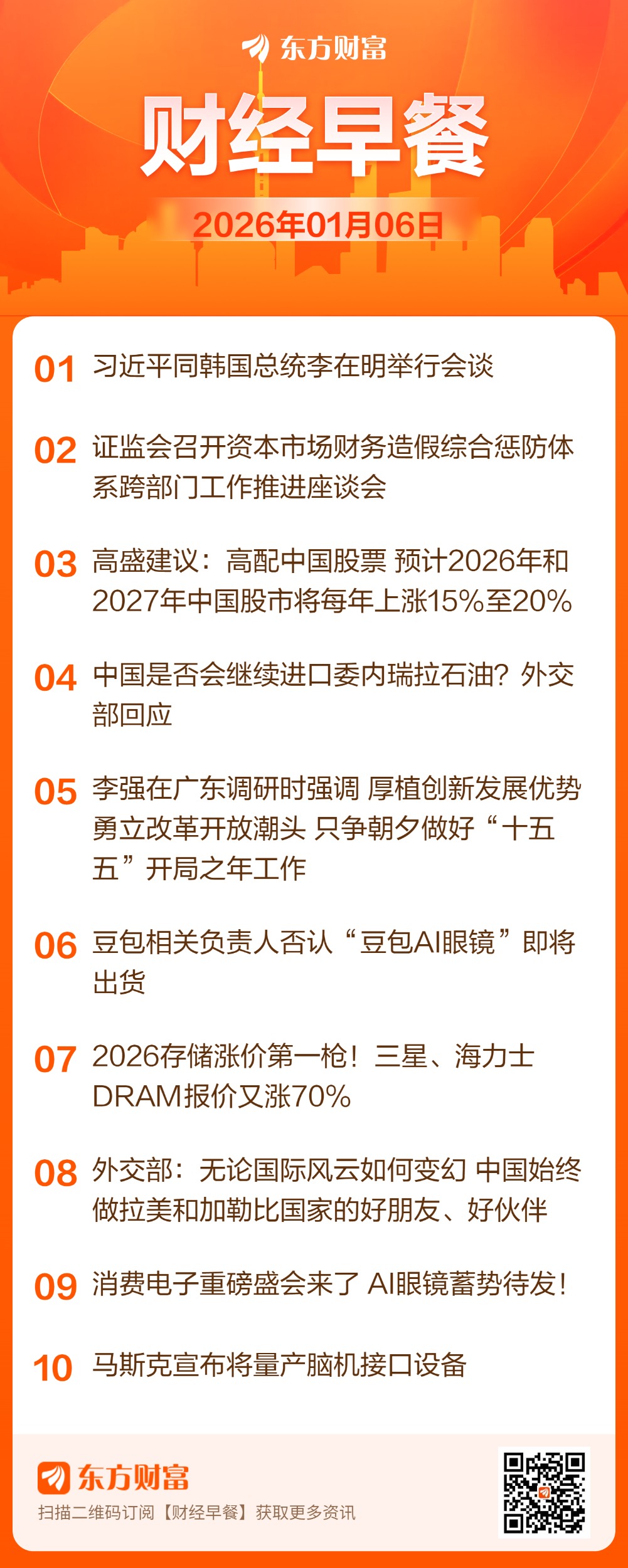 高盛1月5日发布题为《中国2026年展望:探索新动能》的宏观报告。报告称,2026年建议高配中国股票。高盛股票策略团队此前在亚太范围内建议高配A股和港股,预计2026年和2027年中国股市将每年上涨15%至20%,分别由14%和12%的盈利增长以及约10%的估值向上重估所支撑。盈利增长加速的驱动因素包括人工智能应用、“出海”趋势和“反内卷”政策。此外,中国股市当前估值相比全球同业存在显著折价。