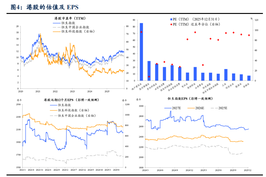 水涨船高:一是港股汇聚的优质企业如停泊其中的巨轮,估值相对较低,坚实的船体(全球竞争力)与满载的货物(成长潜力)在低水位下尤为突出,二是目前压制港股的主要是流动性/情绪因素(日本息交易平仓、美联储鹰派降息表述、互联网高新技术税传言、基石投资者解禁、IPO抽水、公募新规等),市场情绪可能已经调整到位,恒科在120~250日均线随时有反弹可能性,此外,2026年多数国家货币和财政双宽松,流动性宽松或迟早出现。一旦流动性出现反转,来自全球资本活水的重新注入与境内流动性渠道的拓宽,港股有望开启新一轮上涨。尤其要注意是否会出现流动性反转+春季躁动共振,形成向上β的机会。