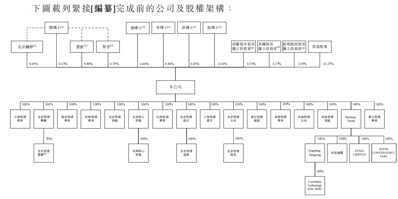截至招股书日期,智谱的控股股东为北京链湃、刘德兵、唐杰、张鹏、慧惠、智登等一致行动人,其共同持有智谱约33.03%股权。值得注意的是,清华大学计算机系教授、联合创始人和控股股东之一唐杰逐渐从公司管理层淡出,其持股比例为6.66%。