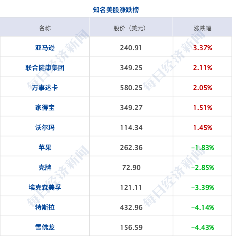美股三大指数集体收涨,道指涨0.99%,纳指涨0.65%,标普500指数涨0.62%,其中,道指、标普500指数均创历史收盘新高;费城半导体指数涨2.75%,创历史新高;大型科技股涨跌不一,亚马逊涨超3%,微软、英特尔涨逾1%,Meta小幅上涨;特斯拉跌超4%,苹果跌超1%,英伟达、谷歌、奈飞小幅下跌;美光科技涨超10%,再创历史新高。中概股涨跌不一,纳斯达克中国金龙指数跌0.78%,禾赛涨超10%,小马智行涨逾5%,华住、联电涨逾4%,霸王茶姬、传奇生物涨逾3%,贝壳、携程网等涨逾1%,满帮、网易等小幅上涨;腾讯音乐跌逾4%,阿里巴巴跌超3%,百度、理想汽车等跌超1%。