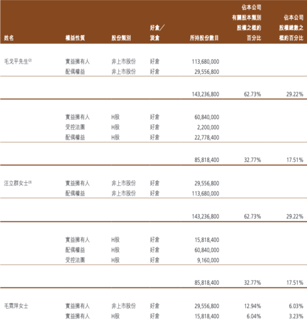 据此前年报显示,上述股东中汪立群为毛戈平的配偶,毛霓萍和毛慧萍为毛戈平的姐姐,汪立华为汪立群的弟弟。宋虹佺是毛戈平公司的核心高管,担任执行董事、公司总裁、同时兼任MAOGEPING品牌事业部总经理。上述六人均为公司执行董事。