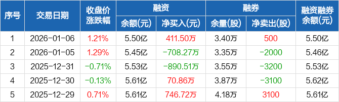 正海磁材融资融券信息显示,2026年1月6日融资净买入411.5万元;融资余额5.5亿元,较前一日增加0.75%。