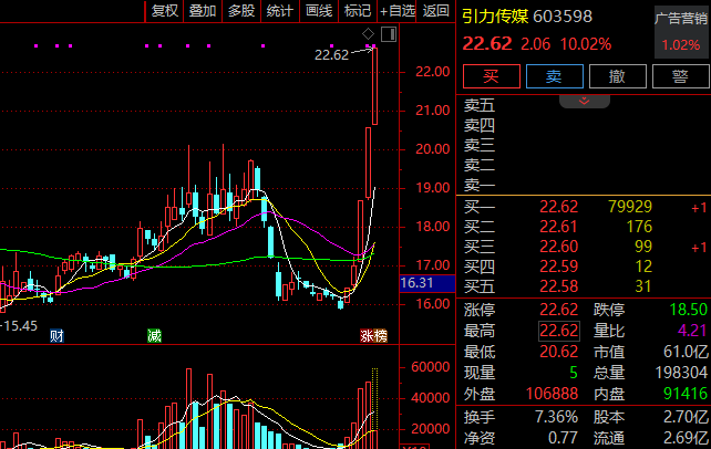AI应用方向盘初走高,引力传媒、东方明珠涨停,浙文互联、蓝色光标、迅游科技、易点天下等涨幅居前。