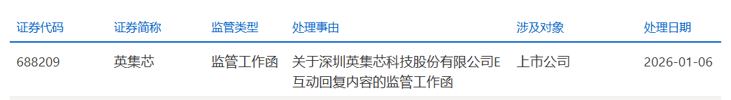 对此,1月6日晚间,英集芯收到上海证券交易所下发的监管工作函,处理事由为“关于深圳英集芯科技股份有限公司E互动回复内容的监管工作函”。