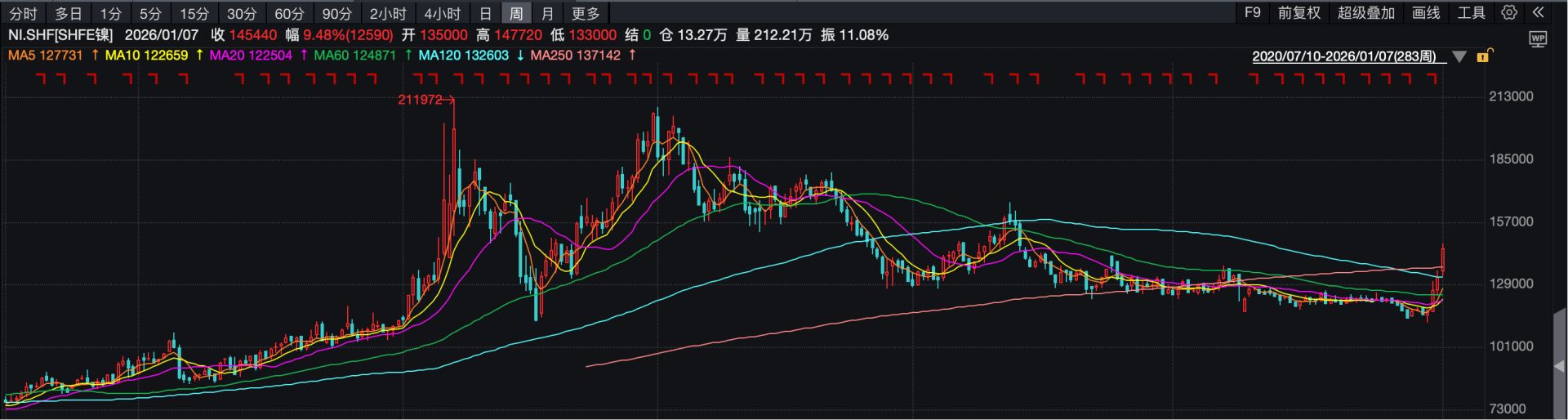 昨天(1月6日),伦敦金属交易所(LME)镍价涨了6.59%,去年12月15日以来累计涨幅接近30%。今天上午,上海期交所镍价接近涨停,阶段涨幅和伦敦价格基本相当。