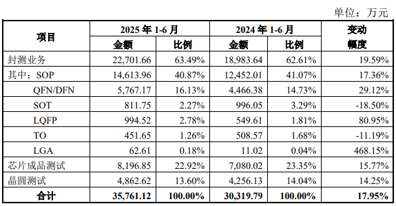 除SOT、TO产品的销售收入有所下降外,公司2025年1-6月其他封测产品和专业测试业务实现的收入较去年同期均存在较大比例的增幅,主要原因为行业景气度和下游市场需求的回升。除气派科技外,同行业其他可比公司营业收入较同期均增长20%左右或更高的水平,公司营业收入的变动趋势与同行业可比公司保持一致。