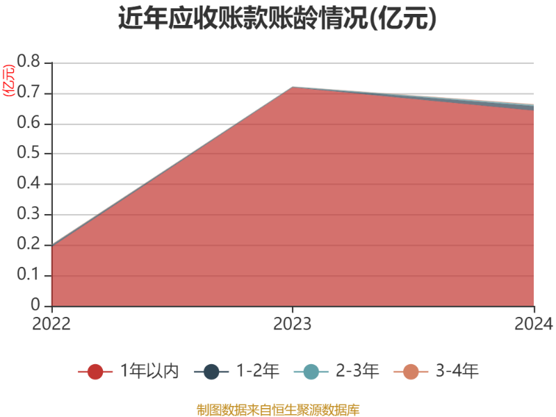 从应收账款账龄结构来看,截至2024年末,公司账龄在1年以内的应收账款余额为0.64亿元,较上年末下降750.25万元。