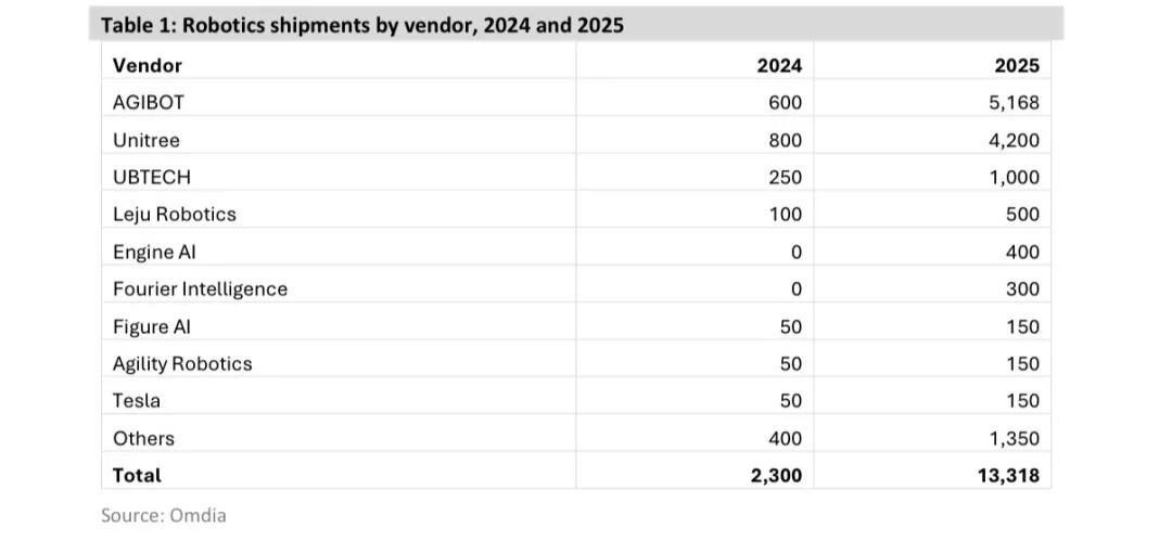 1月8日,市场分析机构Omdia发布报告称,2025年全球人形机器人市场迈入快速增长阶段,全年总出货量预计达1.3万台。